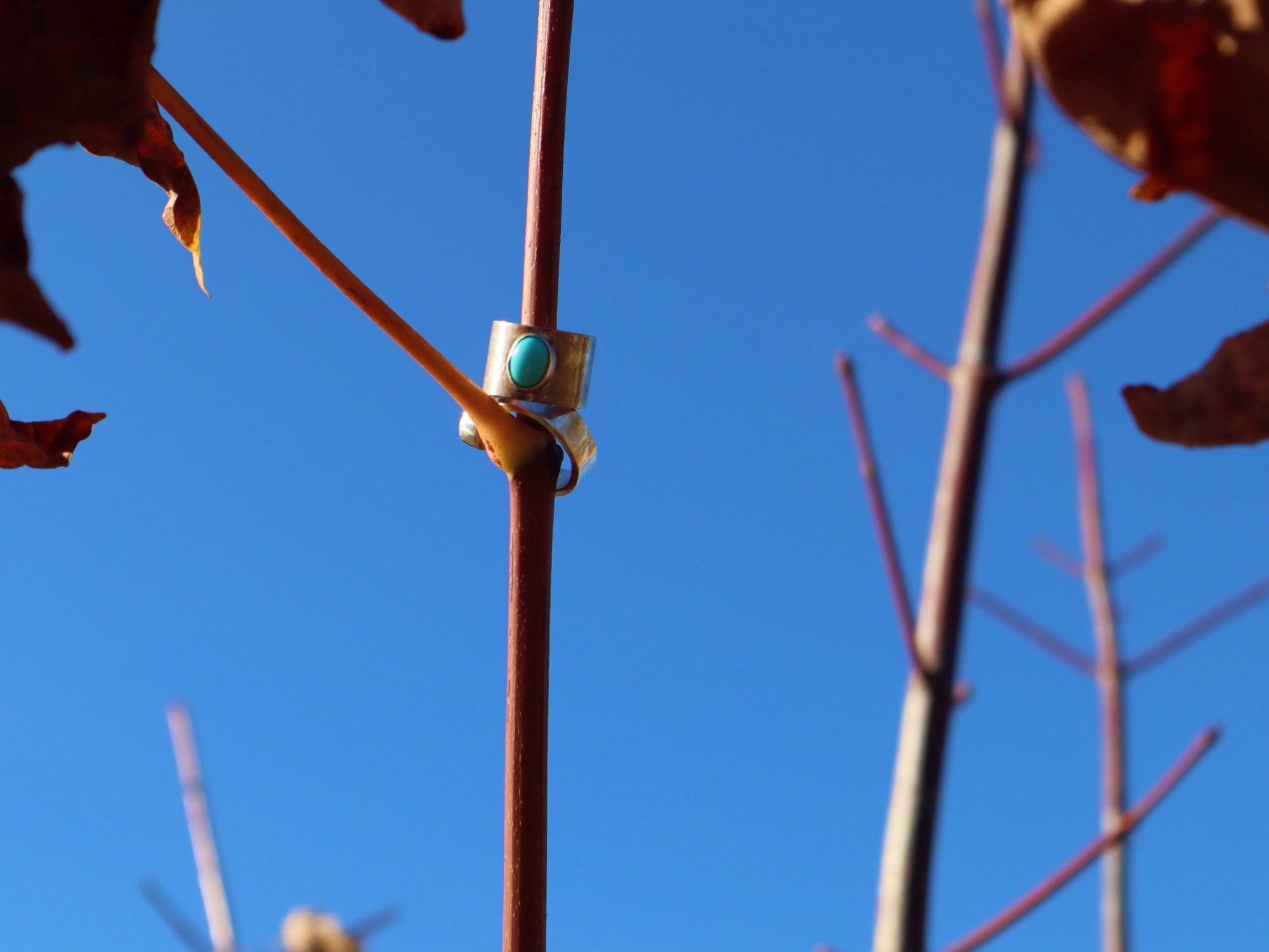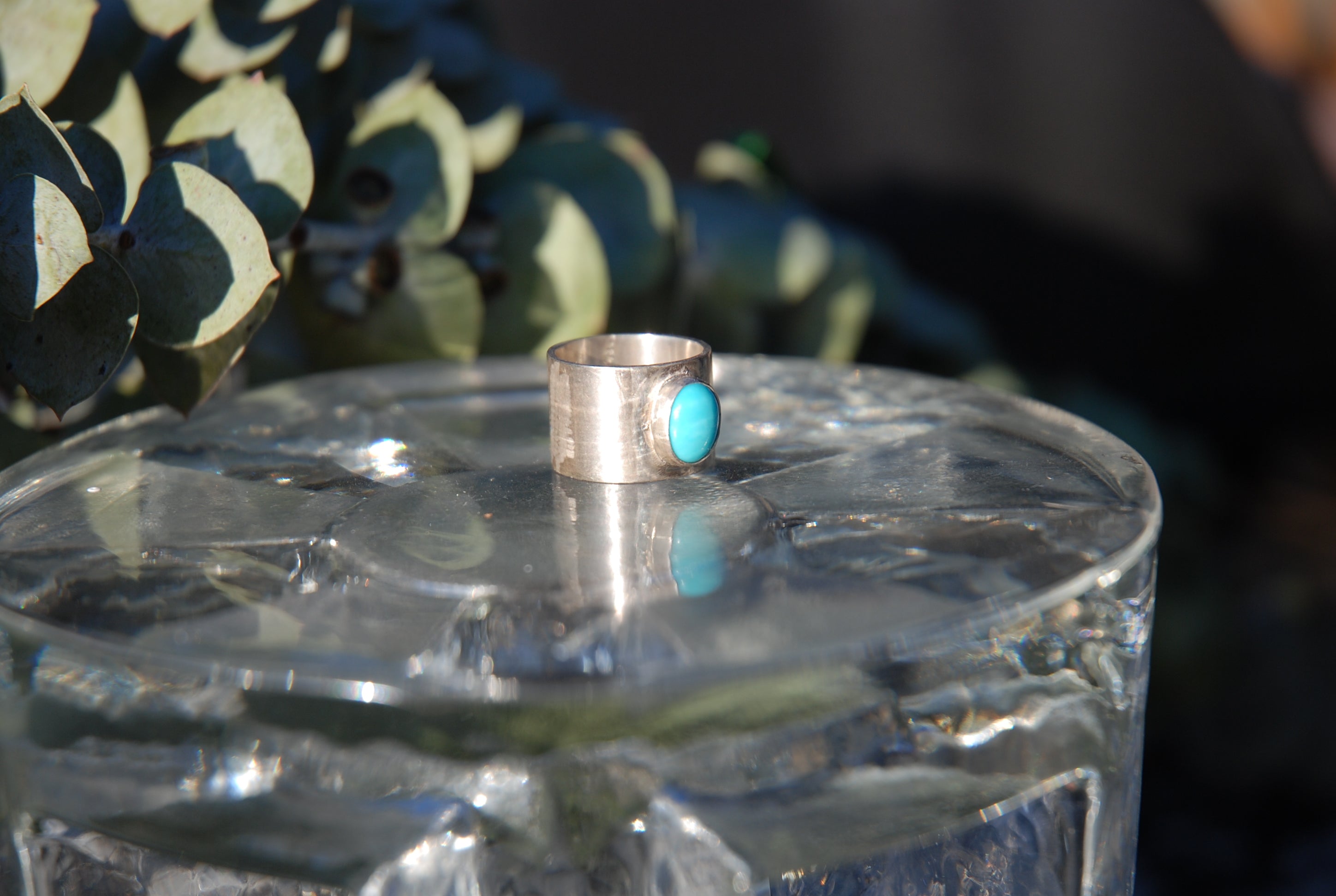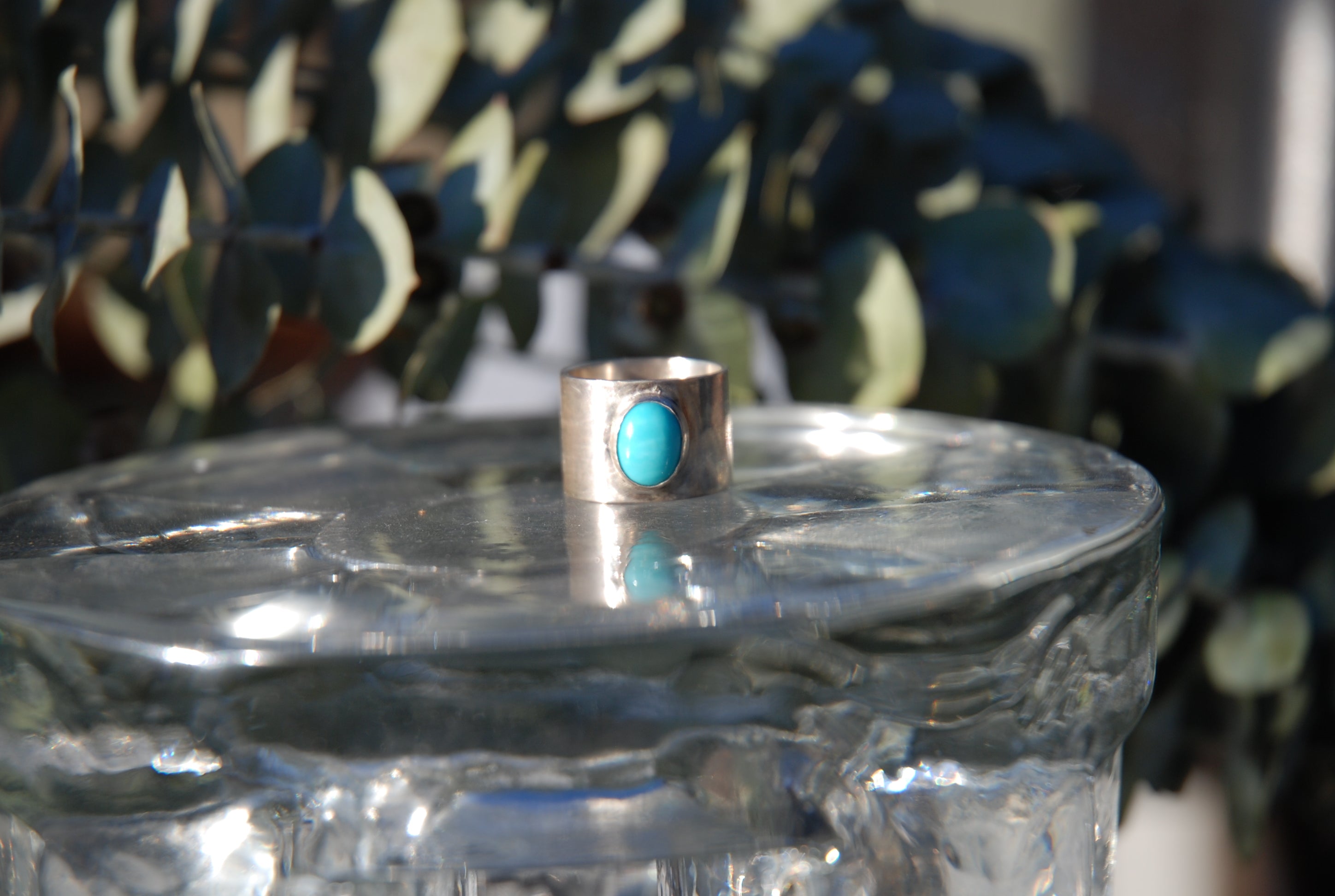 This size 5 thick sterling silver ring with a petite turquoise stone is looking for a small finger to call its home!